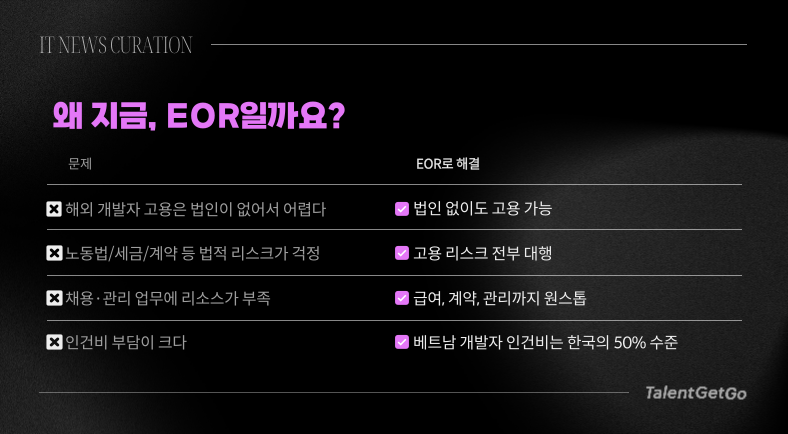#EOR #EmployerOfRecord #해외개발자 #개발자채용 #글로벌채용 #베트남개발자 #IT채용전략 #원격근무