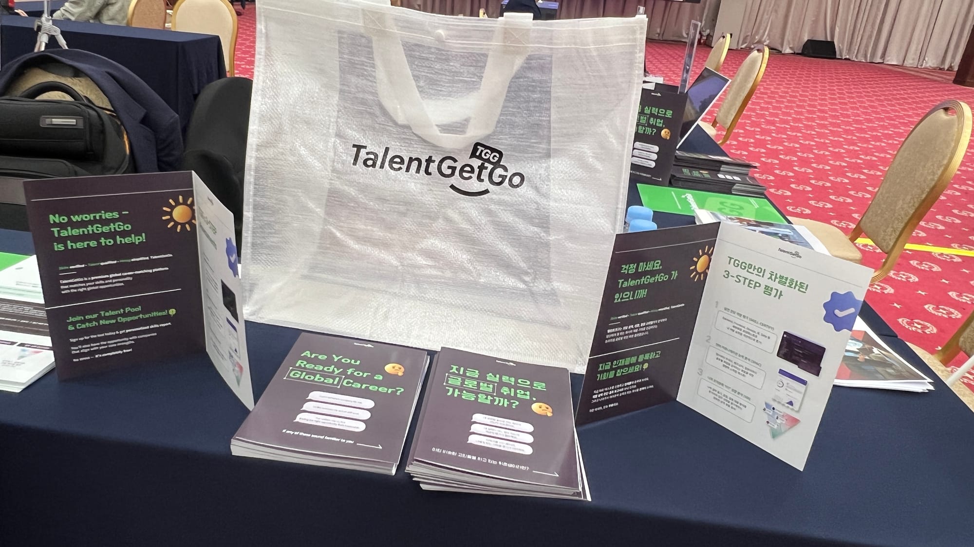 이 행사는 외국인 유학생분들을 대상으로 한 취·창업 박람회로, 한국에서의 취업과 인턴십 기회를 안내하고 연결해주는 자리였는데요, TGG팀에게도 글로벌 인재를 직접 만날 수 있는 소중한 경험이었습니다.